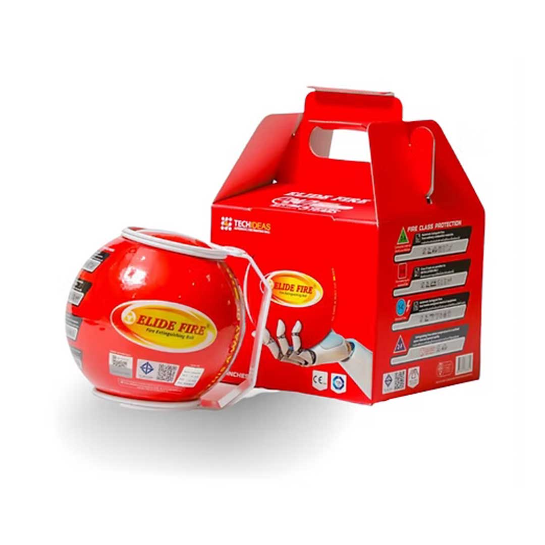 La Boule extinctrice Elide Fire est un dispositif autonome qui s’active automatiquement au contact des flammes. En moins de 3 secondes, elle diffuse un agent extincteur qui étouffe le feu et limite sa propagation. Compacte et légère, elle se place simplement dans les zones à risque telles que la cuisine, le garage ou les locaux techniques. Sans entretien et utilisable par tous, elle offre une protection continue contre les départs de feu.
